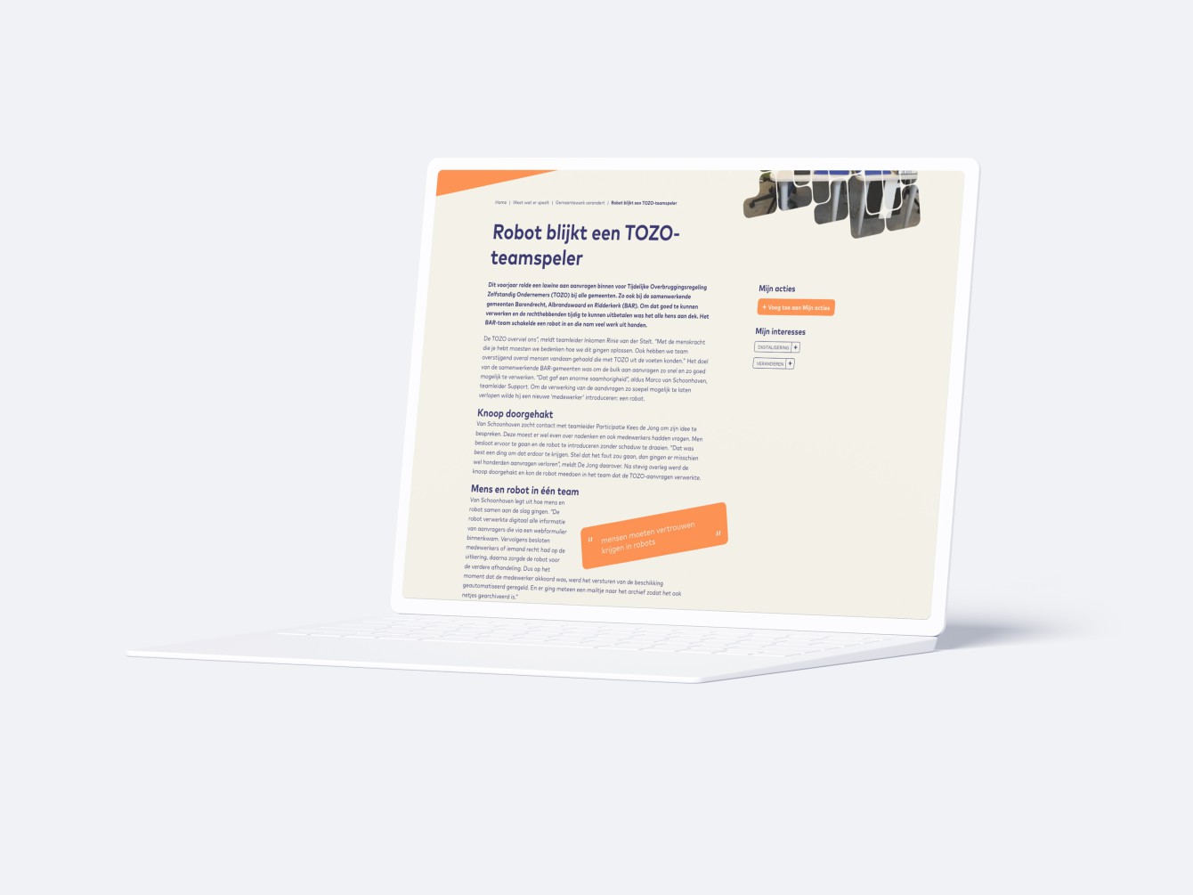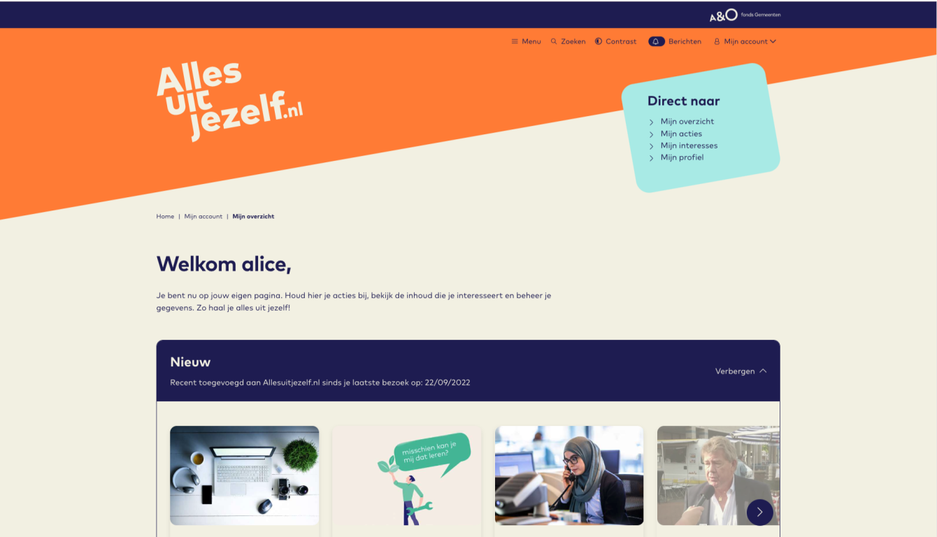 0to9 ontwikkelde een site waar daadwerkelijk alles uit jezelf kan worden gehaald doordat de behoeftes, interesses en doelen van de gebruiker centraal staan. Tijdens het gebruik krijgen de gemeenteprofessionals tips en adviezen in de vorm van notificaties en acties. Ook kan de content worden aangepast op basis van eigen interesses.