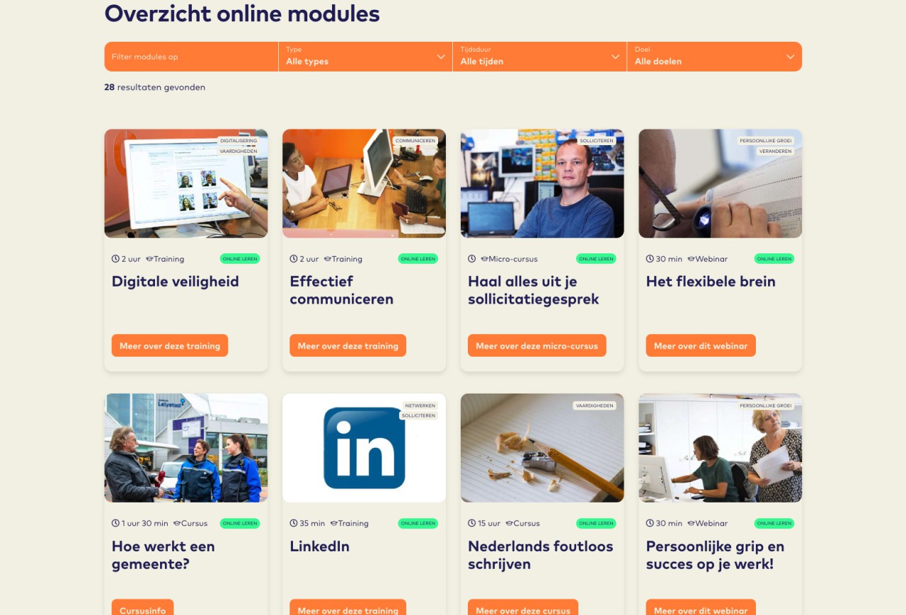 De al bestaande content van A&O is opnieuw samengesteld en geschreven naar de wensen van de doelgroep. Na het aanmaken van een gratis account krijgt de gebruiker toegang tot een hele hoop materiaal om alles uit zichzelf te halen: e-learnings, cursussen, publicaties, een opleiding- en beroependatabase, en tips en tests op het gebied van leren en loopbaanontwikkeling. Ook wordt met een persoonlijk account, dankzij Single Sign On (SSO), de gebruiker automatisch ingelogd als hij of zij aan de slag gaat met e-learnings en cursussen van externe aanbieders.