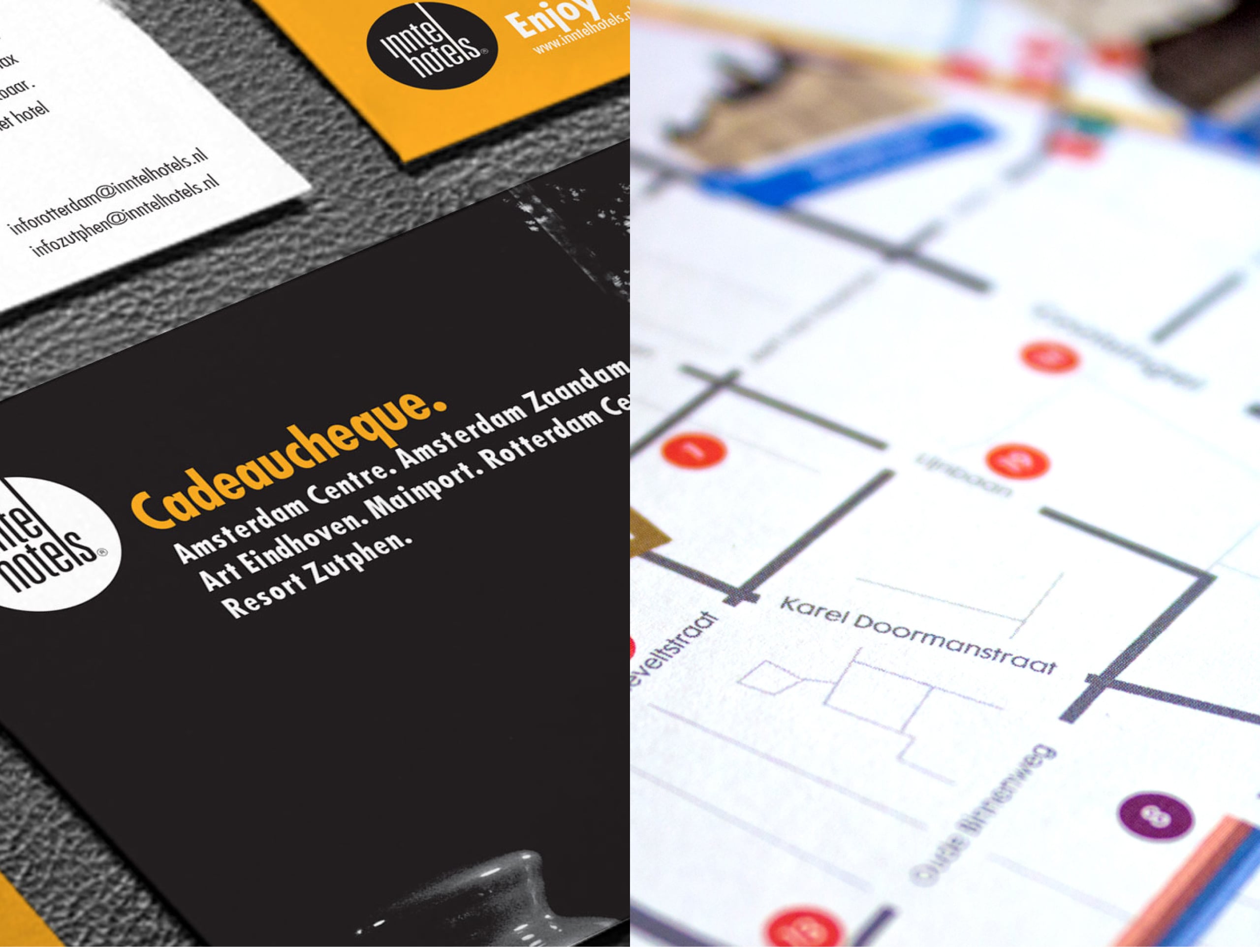 Wanneer je wel eens bij een Inntel Hotel hebt overnacht of in één van de restaurants hebt gegeten, is de kans groot dat je iets in je handen hebt gehad dat door 0to9 is gemaakt. Van de pashouder die je krijgt bij het inchecken tot de deurkaart die je om de klink hangt als je niet gestoord wil worden. De roomservicekaart op je kamer of de menukaart wanneer je gaat dineren in het restaurant? Van Eindhoven tot Amsterdam en via Den Haag terug naar Rotterdam. You’ll be suprrised. Wij hebben het gemaakt!