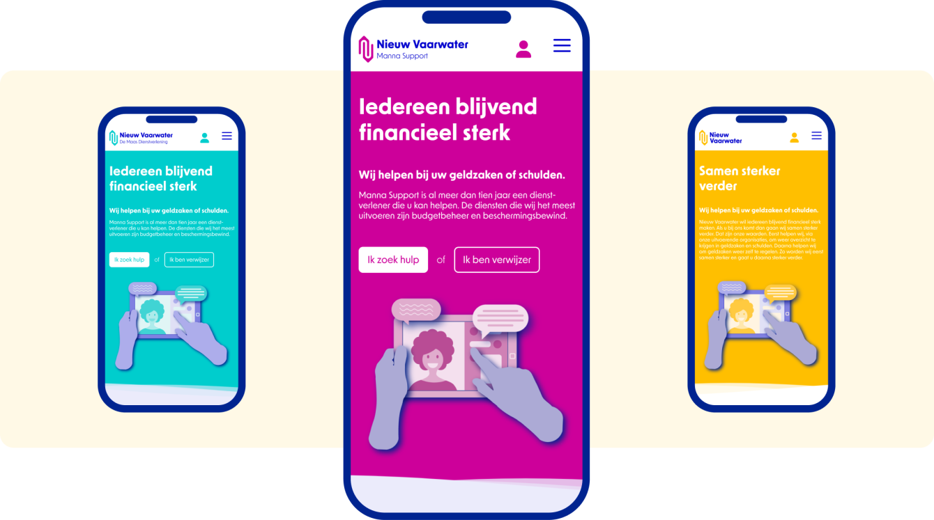 Stichting Nieuw Vaarwater wil iedereen blijvend financieel sterk maken. Via de recent overgenomen uitvoerende organisaties Manna Support en De Maas Dienstverlening schept zij samen met haar klanten overzicht in geldzaken en schulden. Om daarna de klant te helpen zijn of haar geldzaken weer zelf te regelen. Zo worden zij eerst samen sterker en gaat de klant daarna zelf sterker verder.