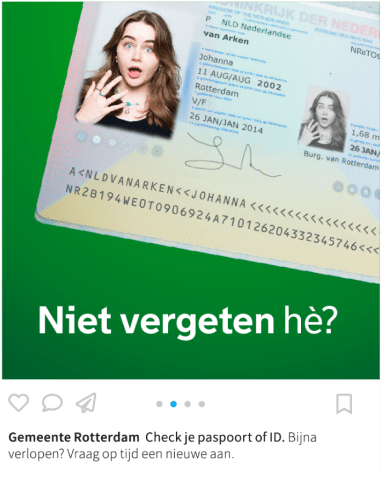 De vraag aan 0to9 is om met een slim concept te komen en daarop volgend het uitwerken van de campagne met het doel om Rotterdammers te attenderen op het mogelijk verlopen van hun reisdocumenten en het op tijd maken van een afspraak bij de gemeente i.v.m. de verwachte drukte. Omdat tussen 2024 en 2029 er van veel Rotterdammers hun paspoort / Id verlopen.