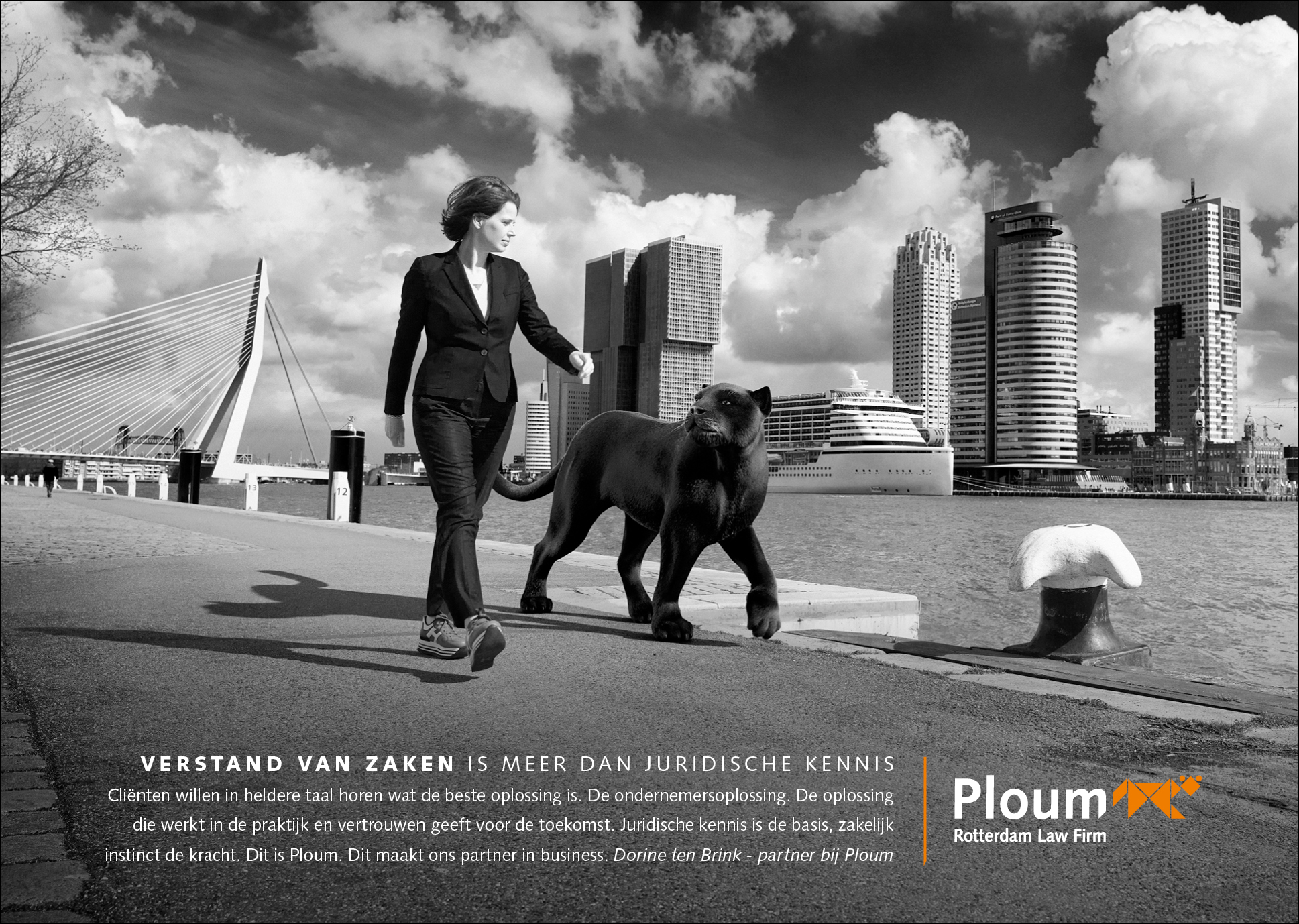 Met Ploum startten wij de vormgeving van de positionering en de BeeldTaal met een Organisatie Waarden Onderzoek. Dat onderzoek maakte duidelijk waar Ploum écht voor staat. Waarom Ploum cliënten en medewerkers heeft, die al vanaf het eerste uur met Ploum mee oplopen. Deze cliënten en medewerkers blijven bij Ploum, omdat Ploum, naast kennis van de wet, iets bijzonders biedt. Vaak is het moeilijk om concreet te maken wat dat dan precies is, maar de interne analyse met het Waarden Onderzoek maakt dat duidelijk. Daarmee zie je direct wat Ploum drijft. Tegelijkertijd maakte de externe analyse duidelijk dat dat naar buiten toe, niet of nauwelijks werd gecommuniceerd. Waarom zou jij jouw zaken aan Ploum moeten toevertrouwen? Waarom is Ploum niet één van de vele advocatenkantoren, maar Rotterdam Law Firm? Wat doet die panter in het logo? En wat heeft de campagne opgeleverd?