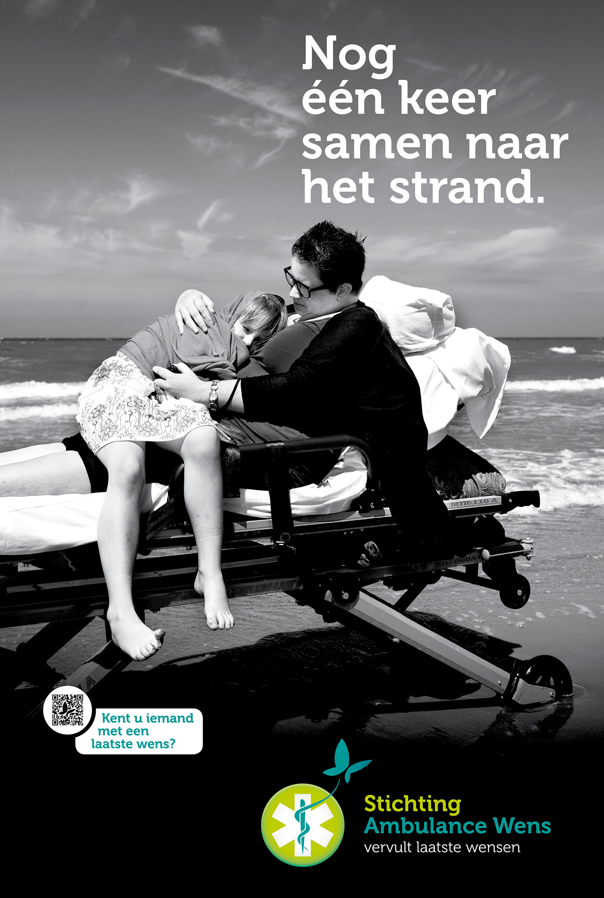 Voor Stichting Ambulance Wens ontwikkelden we het merkenbeleid, de corporate identity en een complete campagne. Daarna zijn wij door velen geholpen om de campagne ook daadwerkelijk te realiseren. Belangeloos werden abricampagnes, radio-, tv-zendtijd, bestickering en sitebouw aangeboden. We stonden zelfs met een complete crew tijdens zonsondergang op het strand om de commercial te schieten.