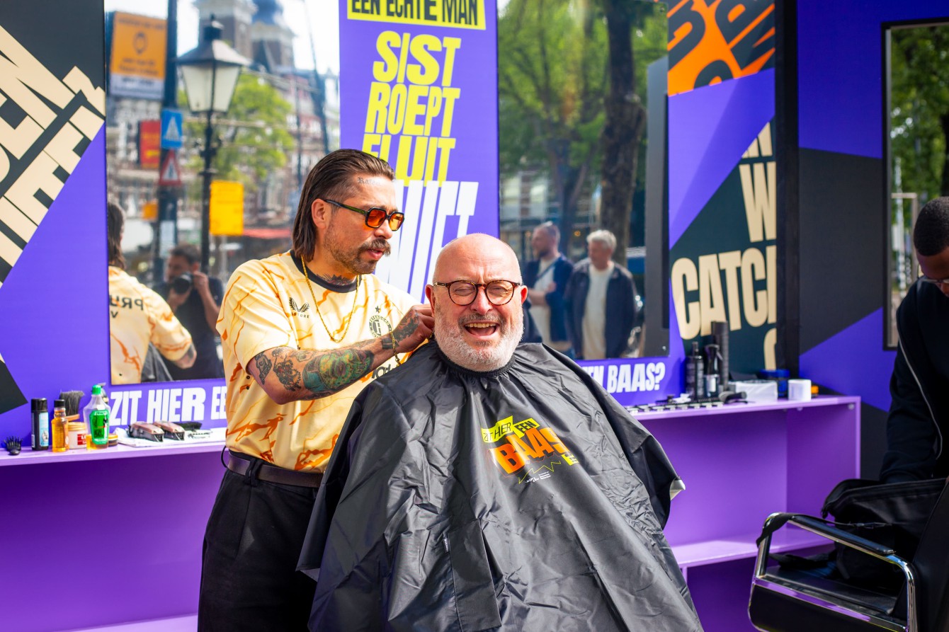 Om het gesprek op gang te brengen, bouwden we midden op straat een pop-up barbershop. Een omgeving waarin mannen zich op hun gemak voelen en het gesprek vanzelf op gang komt. Terwijl de tondeuse zoemde, ging Rarko (een bekende Rotterdamse influencer) het gesprek aan. Over fluiten, naroepen en roepen naar vrouwen op straat. Niet gescript, maar echt. De barbershop werd zo het decor voor eerlijke, open gesprekken en leverde content op die raakt.