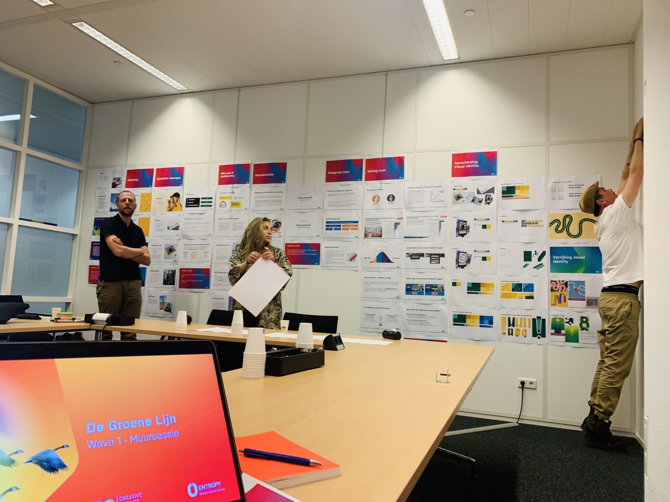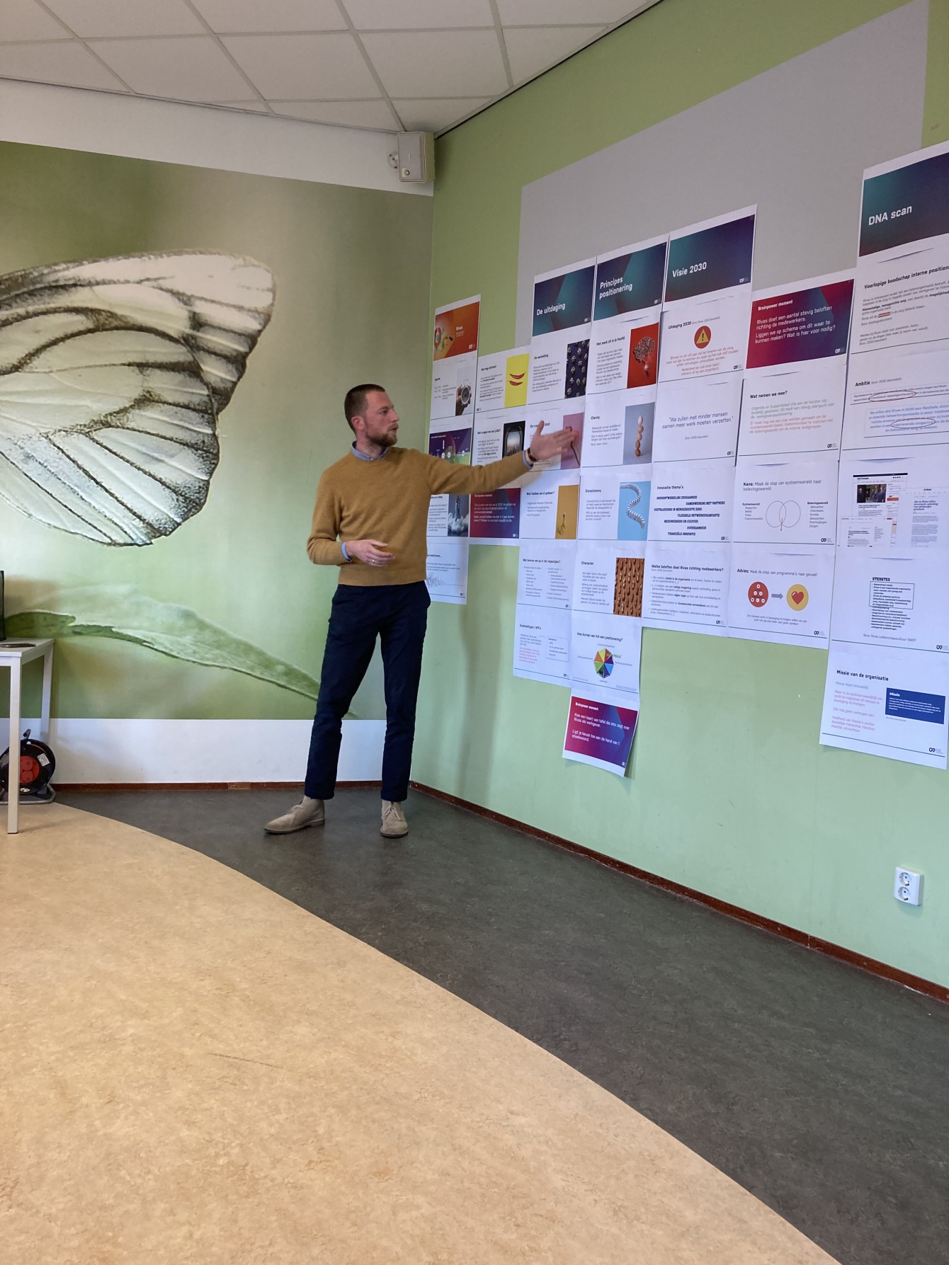 We werken niet vóór, maar mét jou en je team. We hebben onze eigen onconventionele werkwijze. Omdat we geloven dat iedereen in een eigen vorm creatief is. Je draait als klant mee in ons proces. Welke collega's er meedoen, bepaal je zelf. Meestal is dit een afvaardiging van de driehoek directie/raad van bestuur, communicatieteam en HR-afdeling. Van onze kant sluiten communicatie- en cultuurstrategen en creatieven aan. Zij begeleiden jouw team in de reis die wij in hartje Rotterdam voorbereiden. De muursessies zijn voor alle partijen zeer inspirerend. Omdat deze zorgen voor het bepalen van de koers en het team daarmee draagvlak kan creëren bij de andere collega's in de organisatie.
